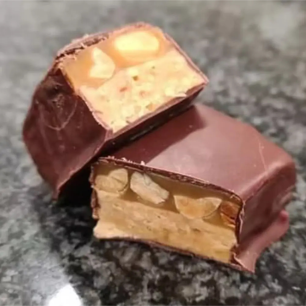 Veganer Erdnuss-Karamell Riegel EDKA – handgemacht in Berlin, voller knackiger Erdnüsse und cremigem Karamell.