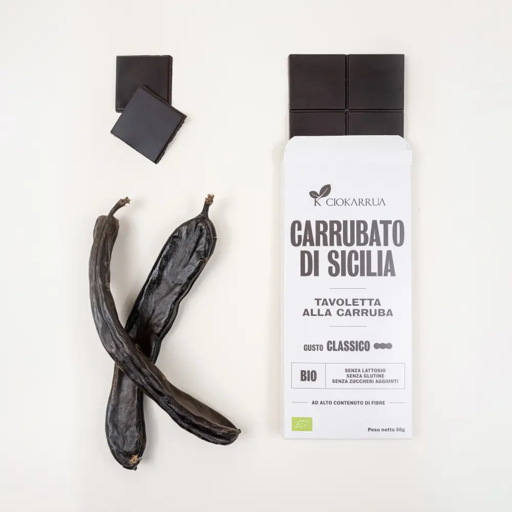 Hergestellt aus ausgesuchten Bio-Zutaten wie Carrubapulver und Kakaobutter. Vegan, glutenfrei und laktosefrei. Keine Zusatzstoffe, Emulgatoren oder Farbstoffe – handwerkliche Qualität aus Sizilien.