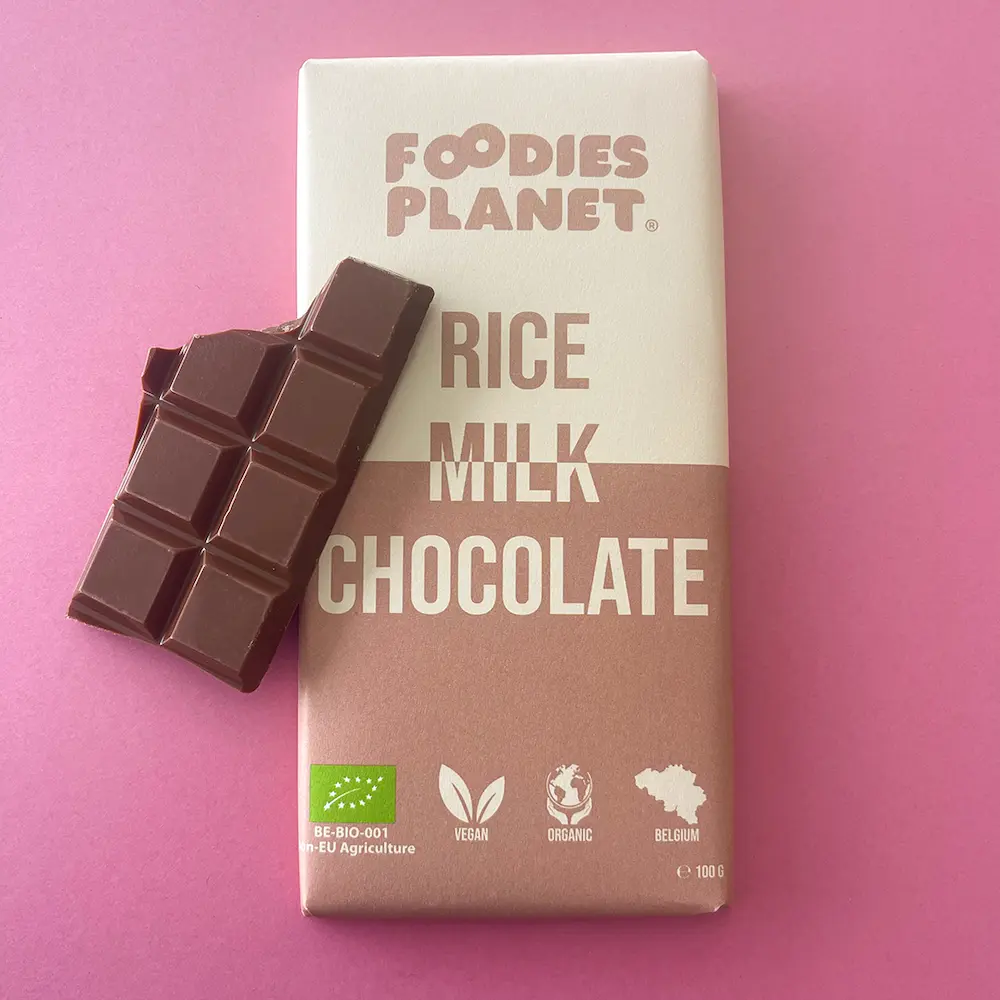 Die Reismilch Schokolade von Foodies Planet bietet cremigen Geschmack ganz ohne tierische Zutaten. Hergestellt in Belgien aus feinster Bio-Kakaobutter, Kakaomasse und Reismilchpulver, liefert sie eine zarte, vollmundige Süße – ideal für alle, die Milchschokolade lieben, aber auf Kuhmilch verzichten möchten.
