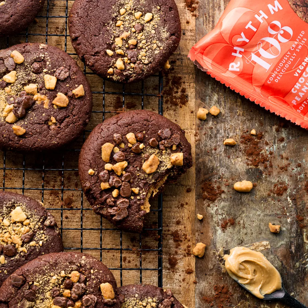 Rhythm108 Schokolade Erdnussbutter Cookies – weich, cremig und voller nussiger Aromen für genussvolle Momente.